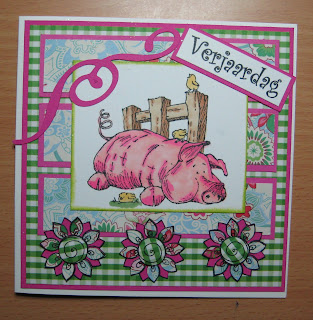I was feeling really crafty today. Yesterday I already choose a image and in my mind the card was ready yet. When you have that it's rather easy to do. I also got my new nestabilities yesterday from Nicole, so I've used them rightaway.